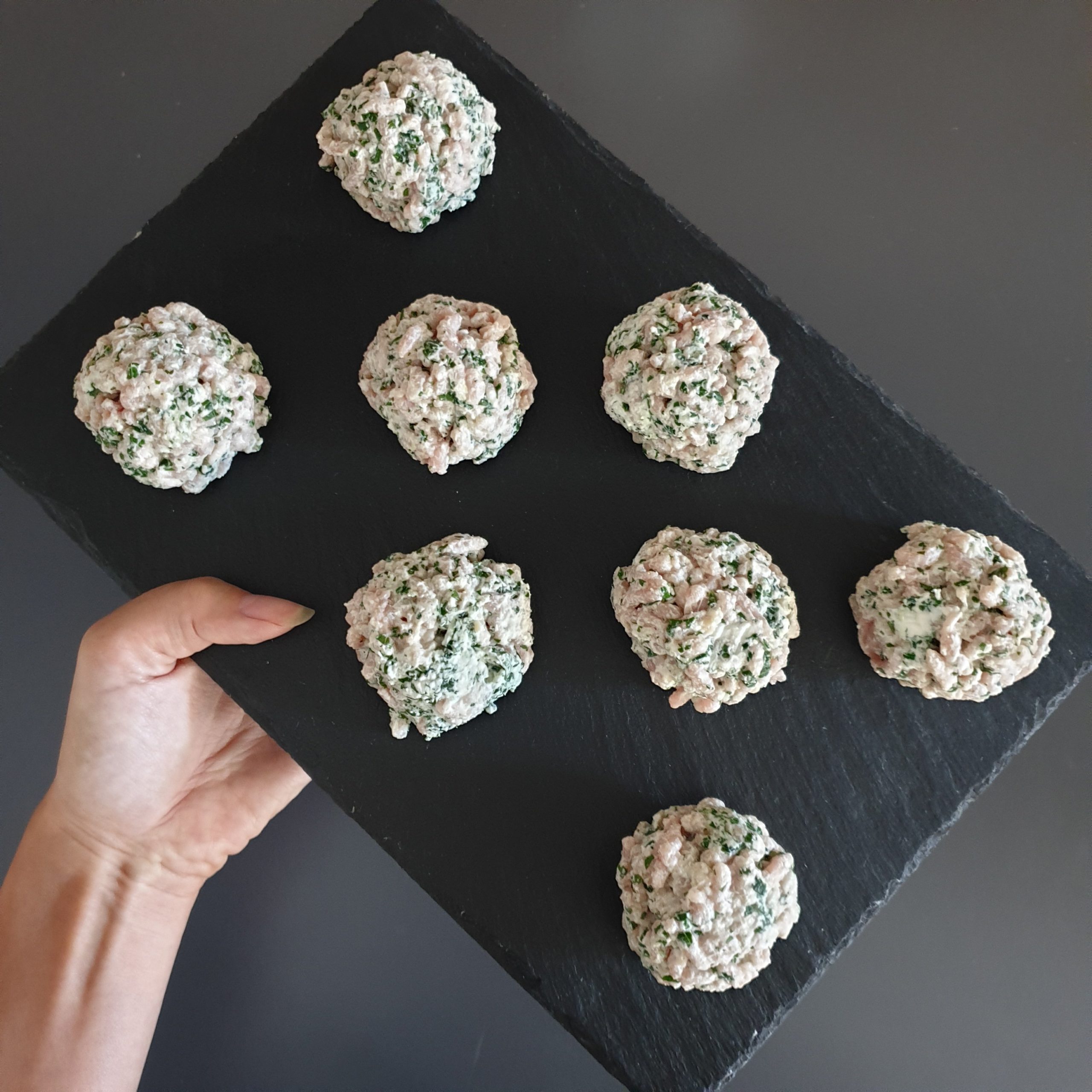 • Bien mélanger à l’aide de vos mains puis, former des boulettes de 3cm environs.
