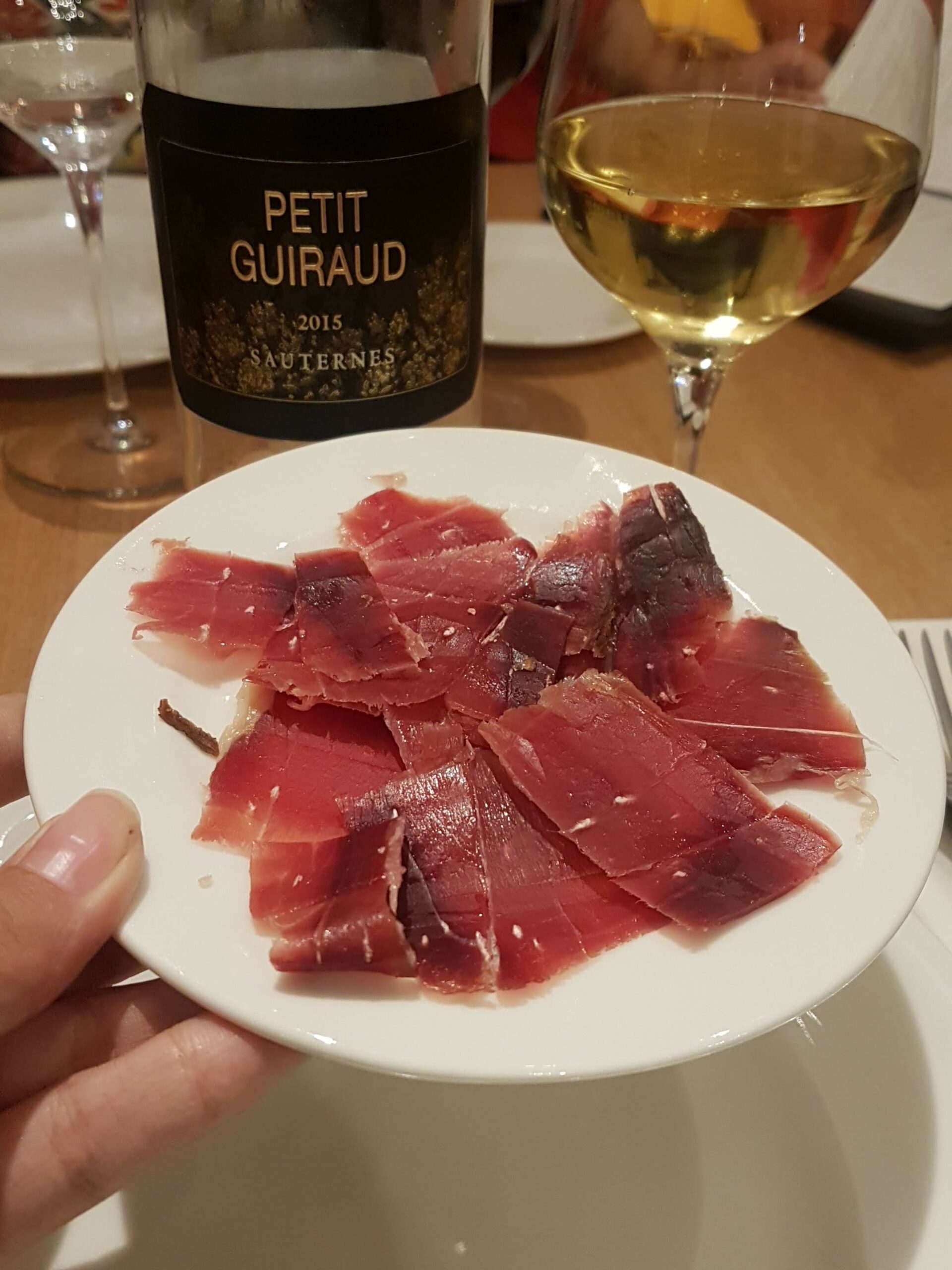 Pour cette deuxième étape de la journée, Marie-Christine et Philippe Sendrey nous ont reçus au Château Haut-Claverie – Fargues. C’est dans le jardin de cette propriété familiale, qui produit les 4 couleurs de vin (rouge, blanc sec, liquoreux et rosé), que l’on s’est installés pour apprécie un apéritif avec les propriétaires en toute convivialité. J’ai toujours aimé les vins sucrés donc là j’étais aux anges durant les accords mets et vins avec des liquoreux !