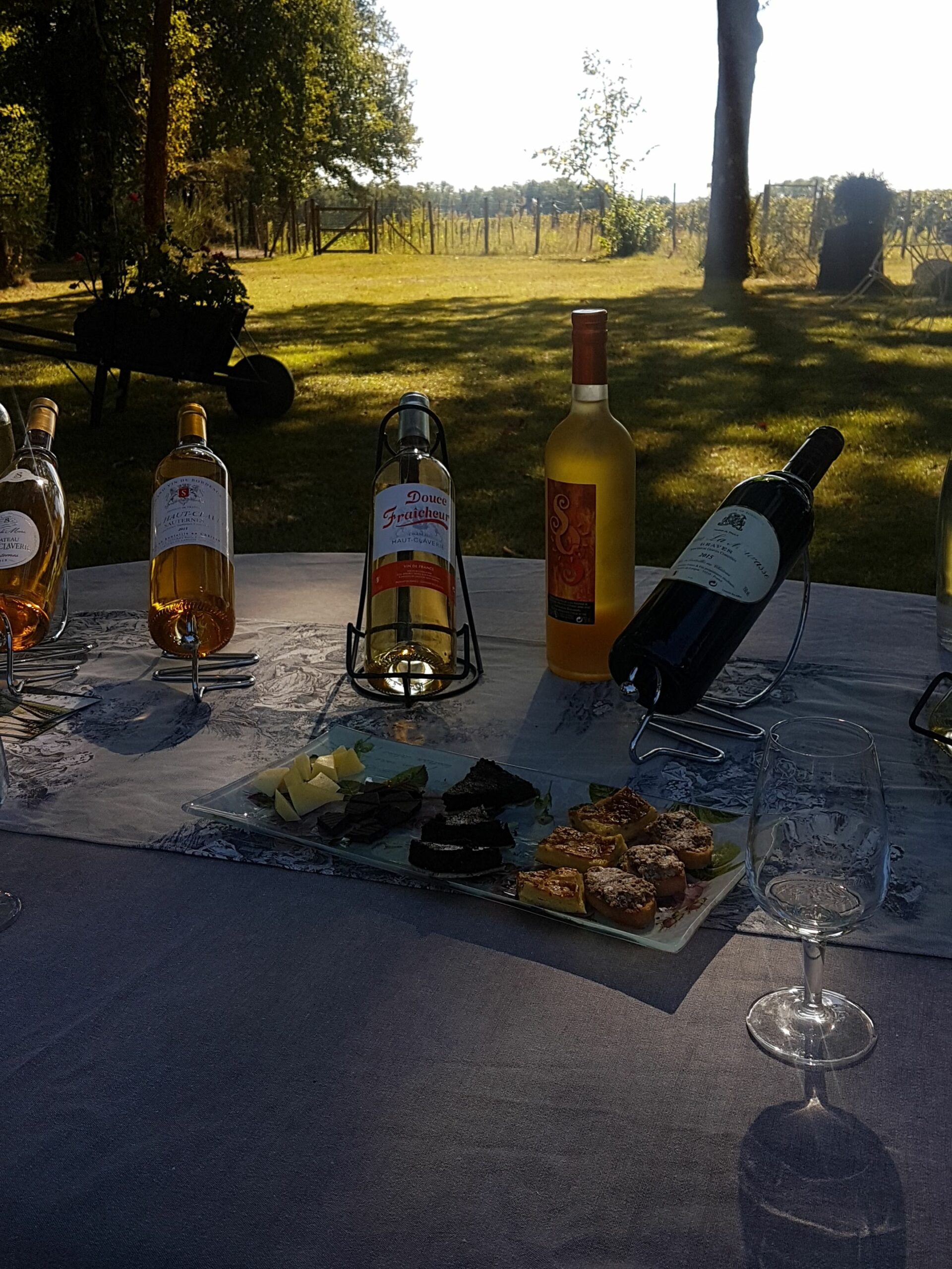 Place ensuite à la dégustation les différents vins du domaine: la cuvée Caroline (50% Sauvignon et 50% Sémillon), du rouge, du blanc, mais aussi du liquoreux en appellation Graves et du rosé de Bordeaux. Mais cette dégustation s’est faite en groupe et sous forme de yoga sensoriel.
