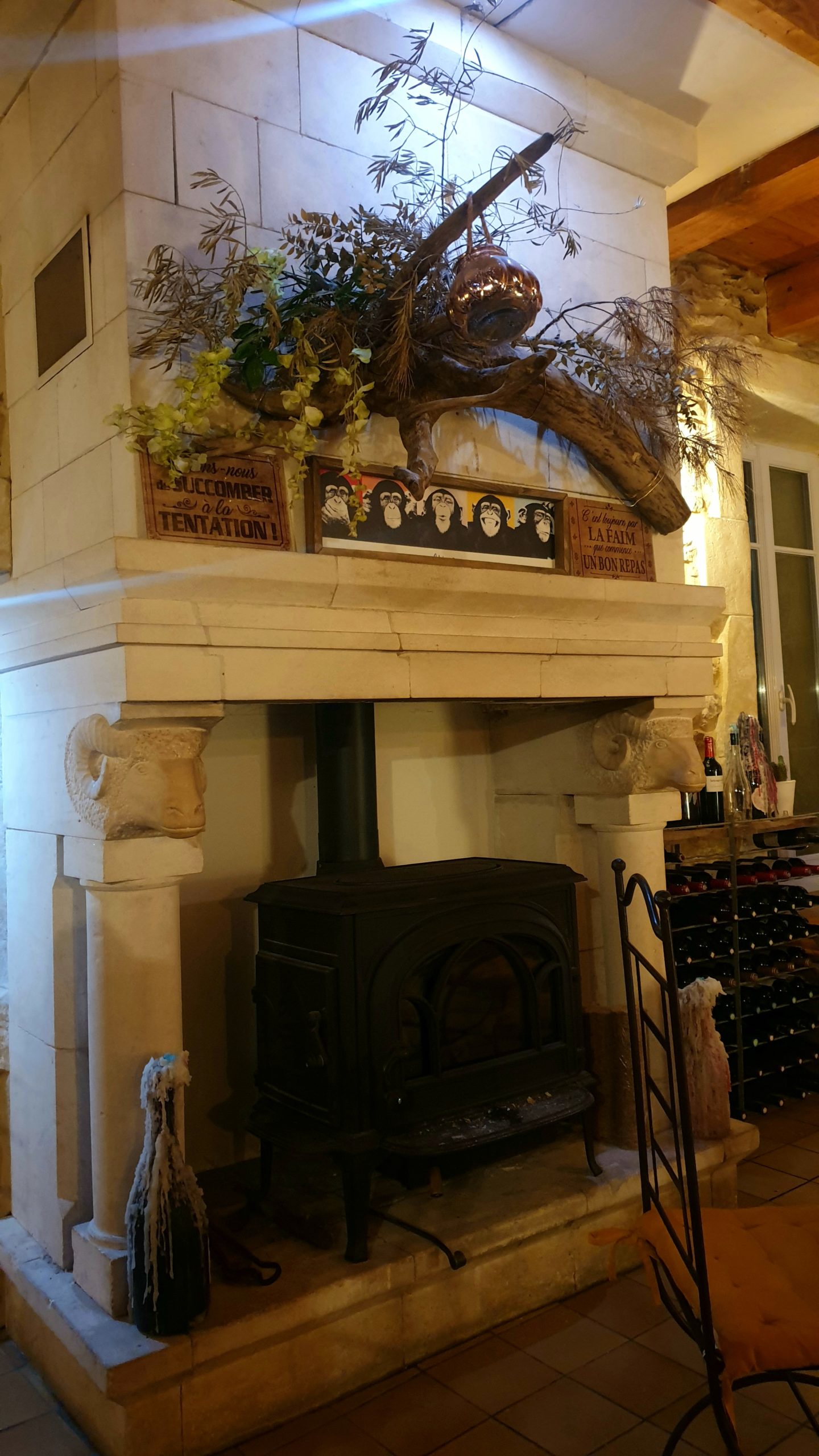 Pour ce premier repas tous ensemble, nous sommes allés au Mas du Bélier. Il était tard et il faisait bien trop froid pour que l’on profite de la terrasse. Nous avons donc mangé à l’intérieur dans une salle plus que chaleureuse. Entre la lumière tamisée, la cheminée, les meubles en bois et les murs en pierres, j’ai adoré ce cadre ! Un restaurant parfait pour les longues soirées d’hiver !