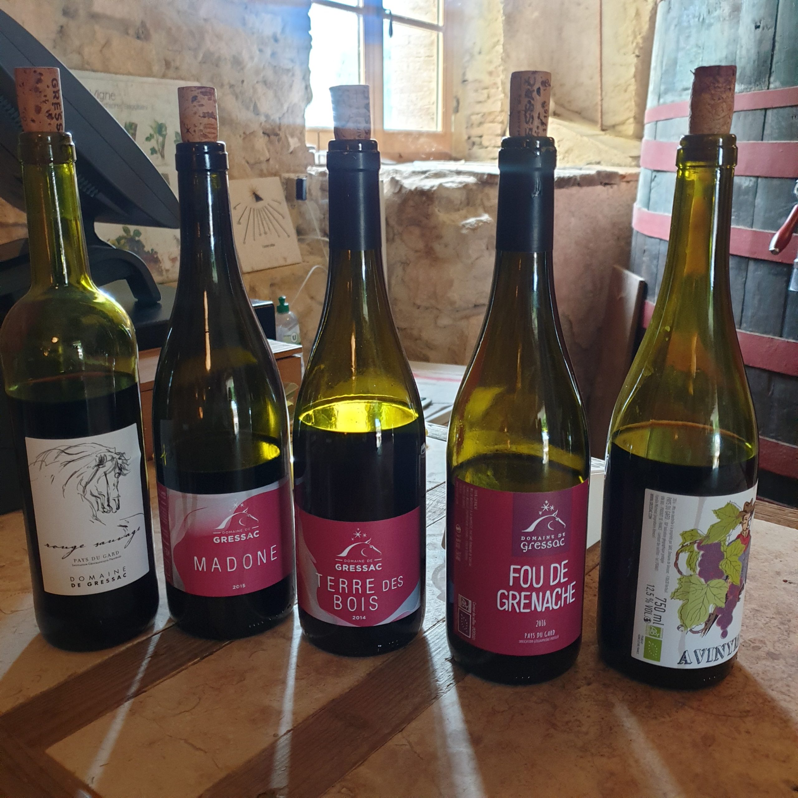 Dernière activité prévue avant de quitter le domaine : la dégustation de ses vins ! Depuis 50 ans le vignoble de Gressac élève des vins issus d’une agriculture biologique respectueuse de l’environnement. Mêmes plus que biologiques, ces vins sont « naturels ». Les vendanges sont faites manuellement et lors de la vinification les interventions techniques pouvant altérer la vie bactérienne du vin sont proscrites, ainsi que tout ajout de produit chimique, à l’exception, si besoin, de sulfites en très faible quantité (rarement plus de 10mg/litre.). Juste avant de prendre la route vers la gare et de se dire au revoir ce moment de partage était parfait pour clôturer en beauté ce week-end en Provence Occitane.