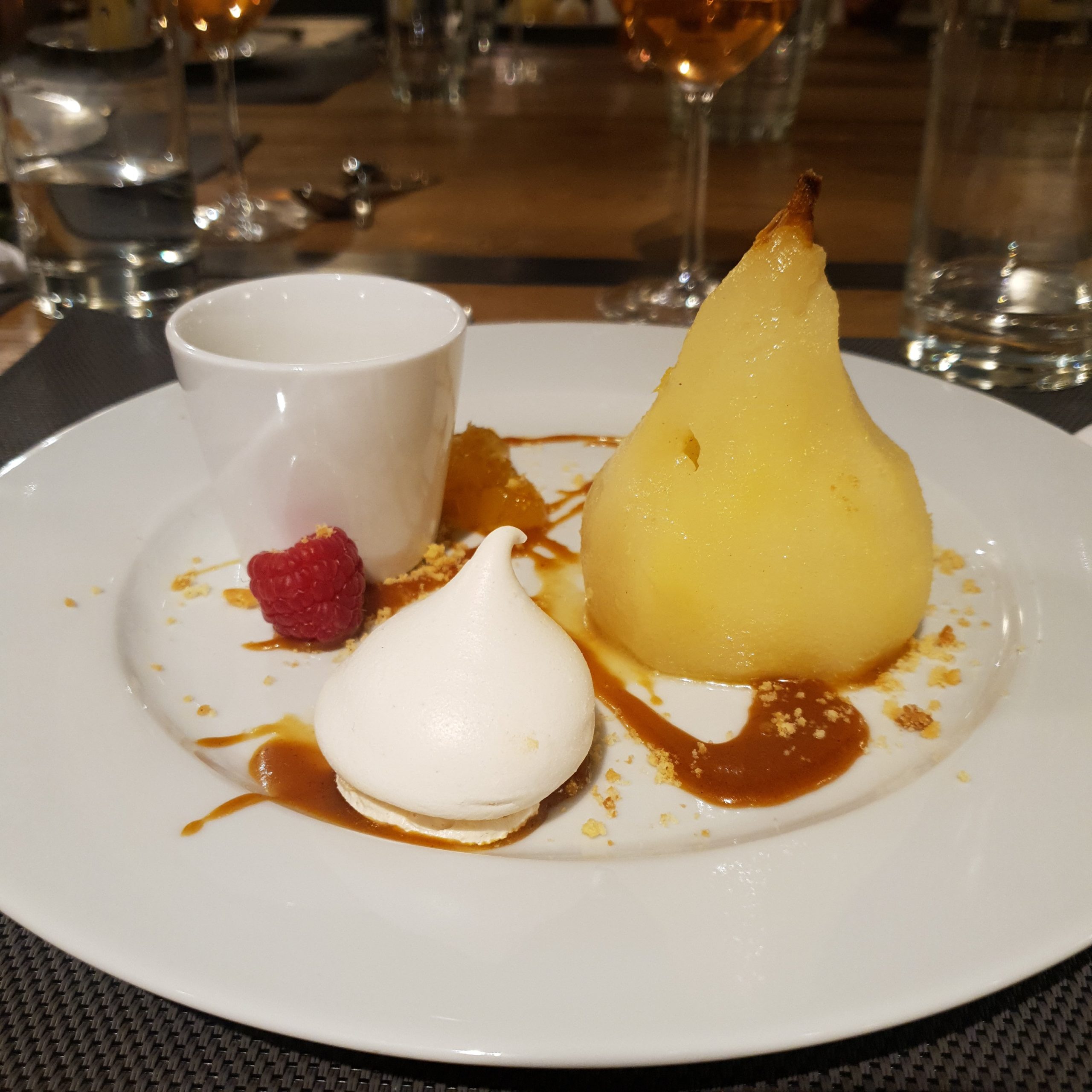 - Dessert : poire pochée au sirop d’épices
