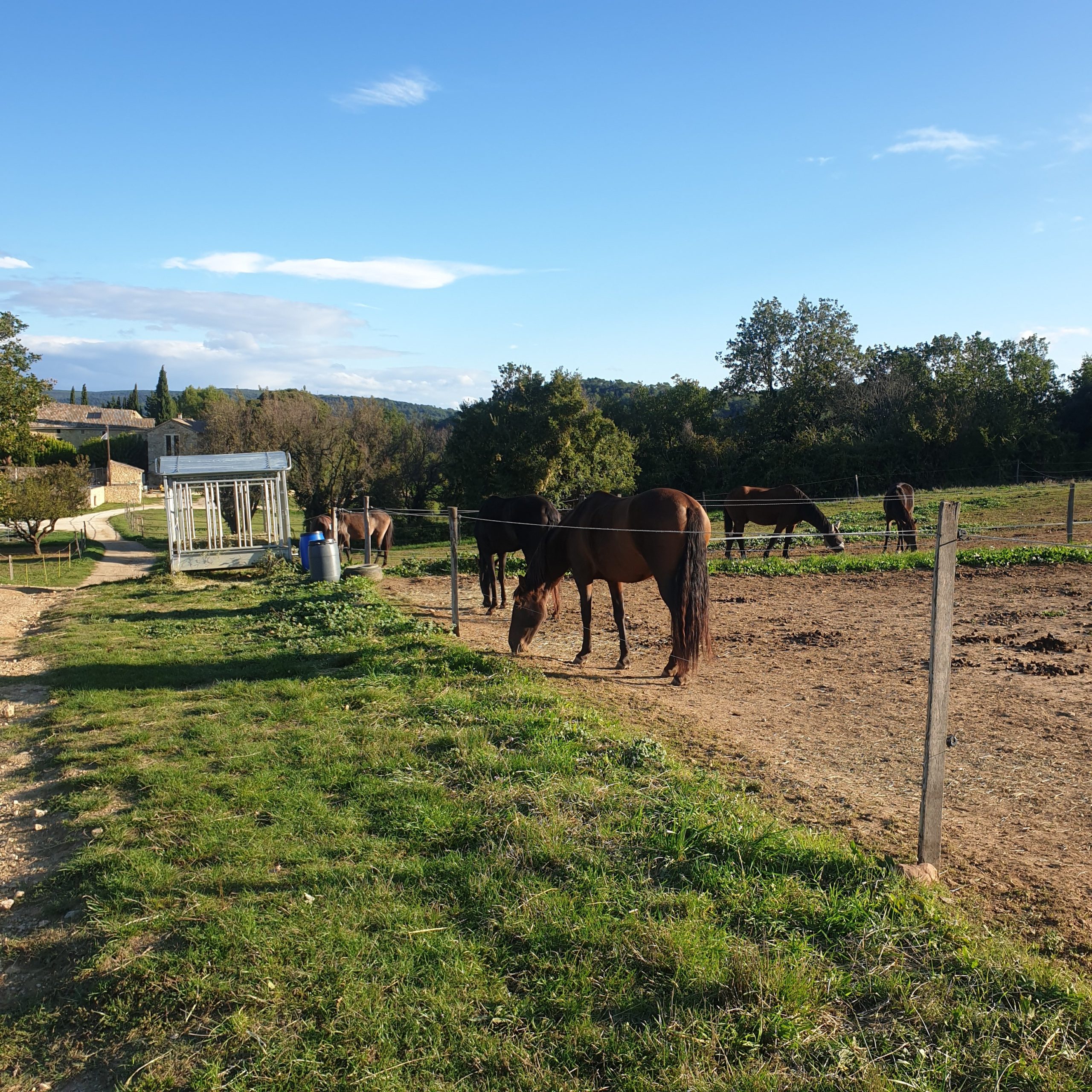 Tout comme la veille, la journée a commencé par un petit déjeuner copieux et plein de vitamines avec d’excellents jus maison. Nous nous sommes ensuite promenés dans le Domaine de Gressac. Durant cette balade nous avons pu voir le caveau ainsi qu’une partie des chevaux et des vignes du domaines avant de partir en forêt pour avoir une vue sur les hauteurs. Mais un peu de patience, je vous parlerai plus en détail du domaine à la fin de cet article…