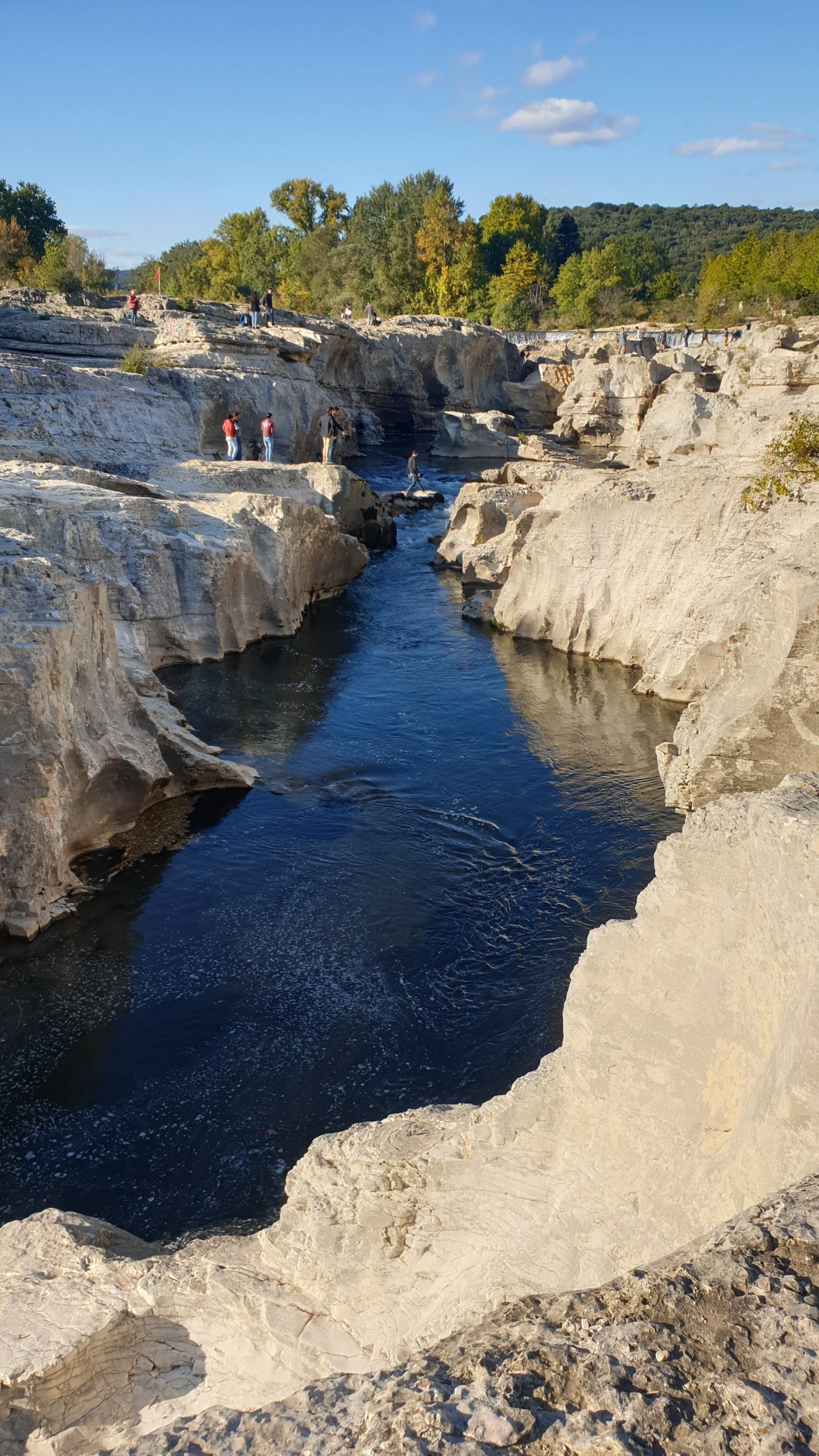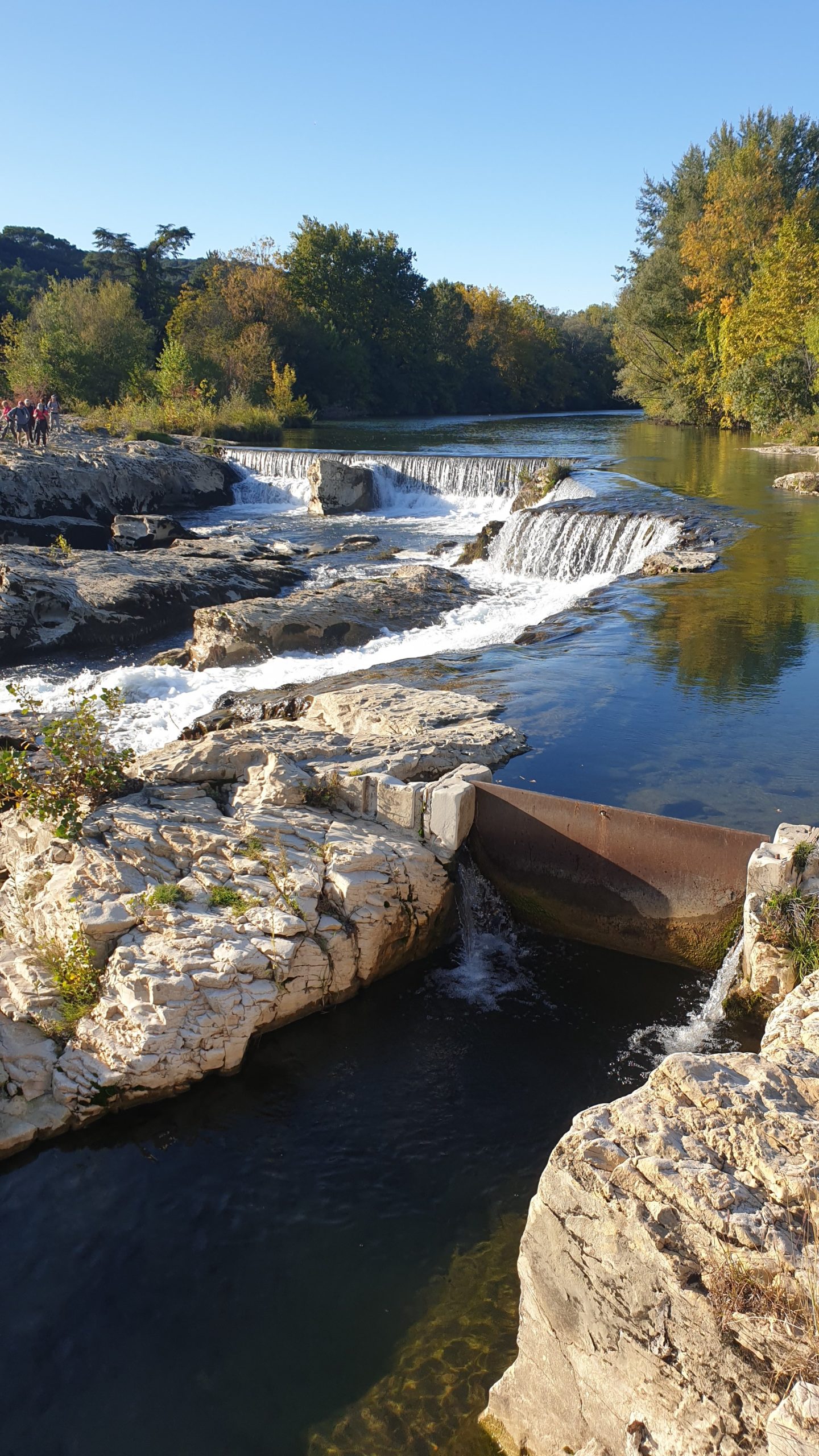 Le temps de me remettre de mes émotions / bobos (et de ralentir le groupe de 20 bonnes minutes) et nous sommes repartis de plus belle pour aller aux Cascades du Saudadet. Ce site classé est une série de chutes d’eau d’un niveau progressif de 15 mètres et de rapides situés sur le cours de la Cèze. Bien que cela donne envie, il est extrêmement dangereux de se baigner dans ce cadre magnifique. Situé non loin des cascades, nous avons ensuite filé au village de La Roque-sur-Cèze. Entre les vignes, le charme des pierres et la lumière de fin de journée, je pense que c’est celui que j’ai préféré. Étant incapable de prendre des photos et de pédaler en même temps je n’ai malheureusement pas beaucoup de clichés à vous montrer. Je vous donne cependant rdv sur le blog de JF et Nathalie qui ont écrit un super article sur ce blogtrip.