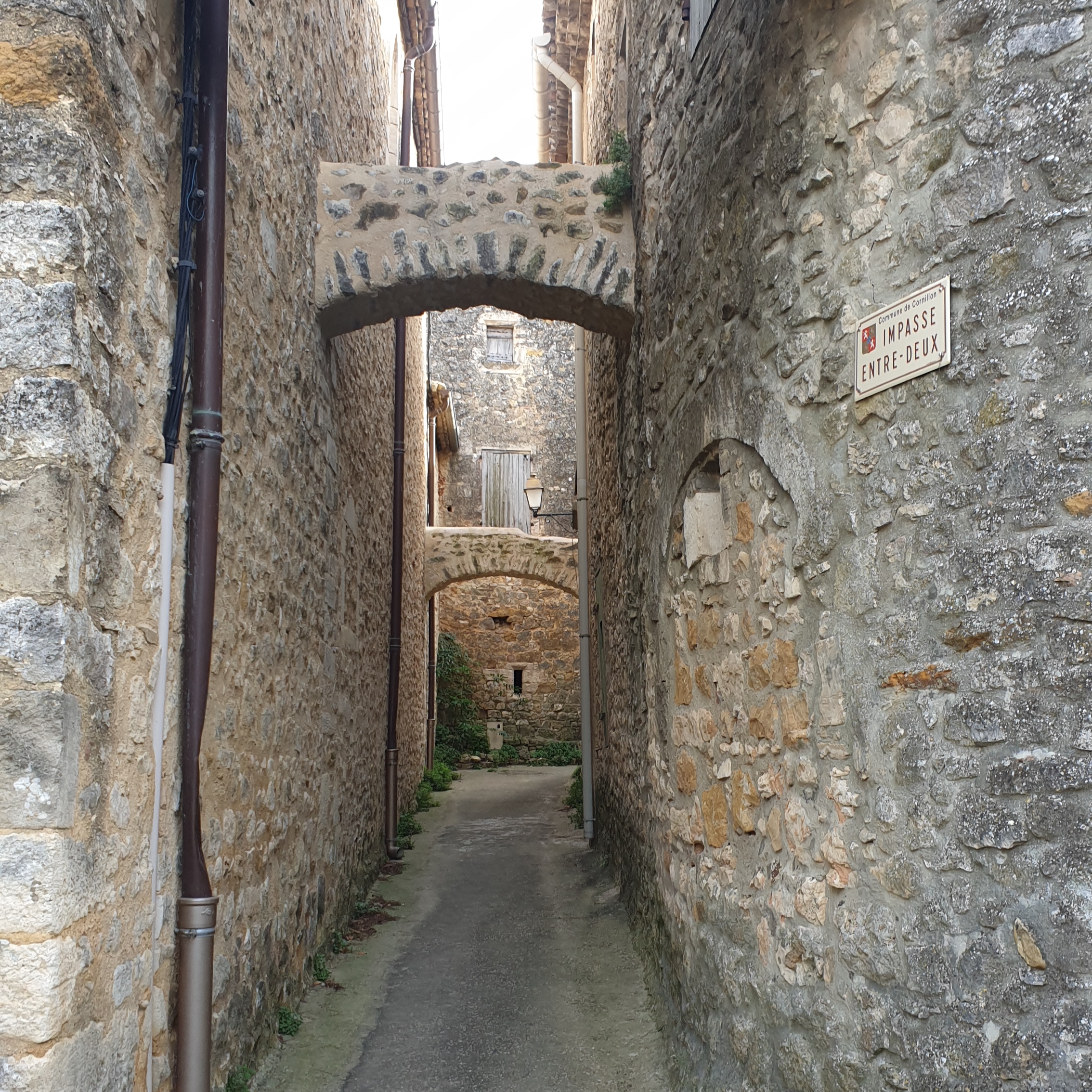 Après un déjeuner pareil je n’avais qu’une envie ; me mettre en boule sous un plaid. Mais le programme fût bien plus sportif ! En effet, l’Office de Tourisme nous avait concocté une balade en VTT électrique. Accompagnés de deux guides, Frédéric de Provence Bike Tour et Sébastien d’Occitan’ebike, nous avons donc parcouru 28km à travers de charmants petits villages de Provence Occitane tels que Cornillon où j’ai pris la photo ci-dessous.